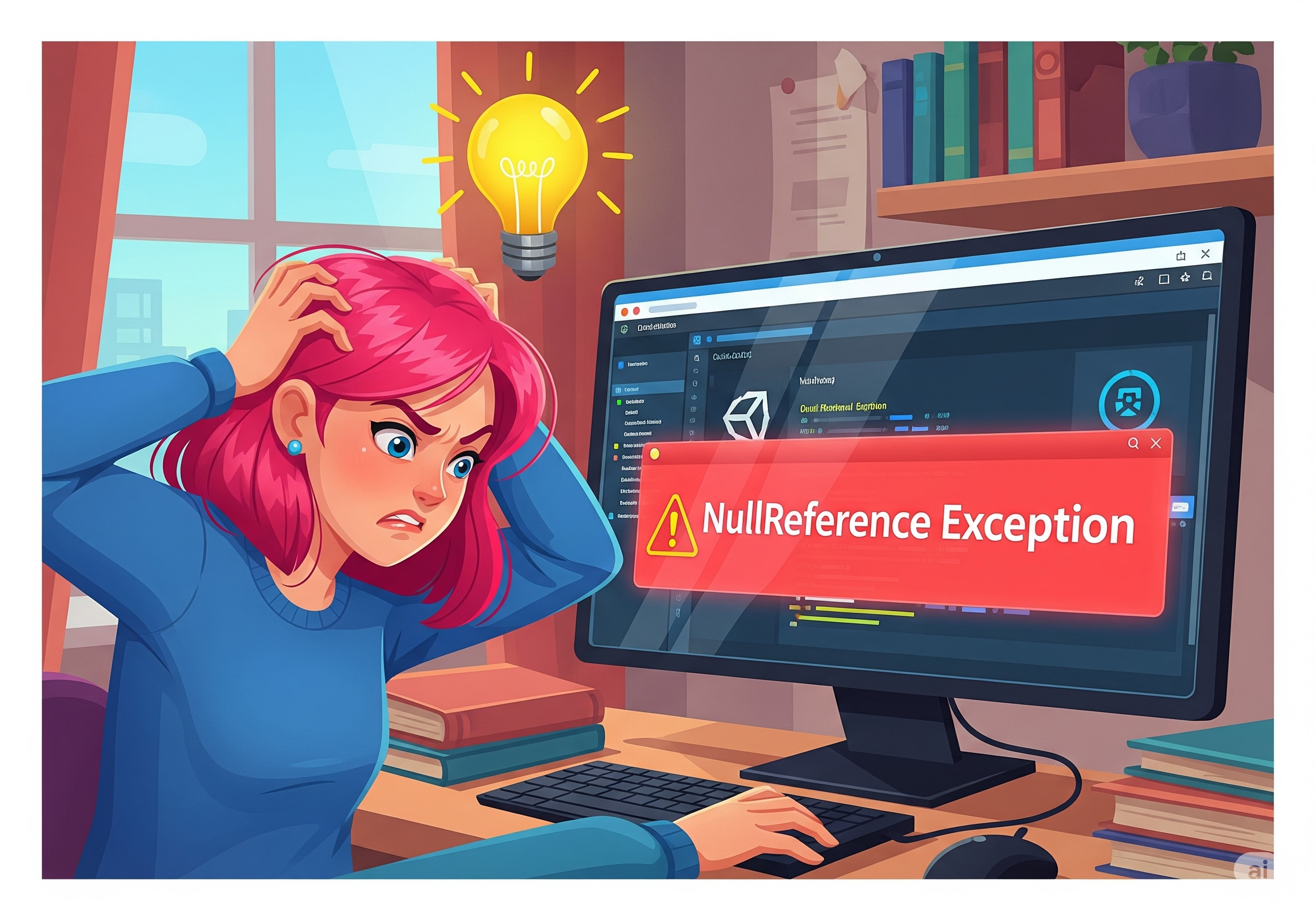 Durante o desenvolvimento na Unity, é comum nos depararmos com erros no console. Um dos mais frequentes, e que costuma gerar bastante dúvida para iniciantes, é a NullReferenceException.